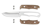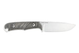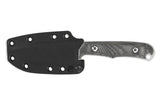 With backpacking hunters and outdoorsmen in mind, the Backpacker is a lightweight knife designed for skinning and utility. A tribute to Chris' original 1980s Backpacker design, the newest iteration echos Chris' original details with modern materials. Its blade provides ample belly and a drop point shape for more control. Its canvas Micarta handles provide comfort without sacrificing agility, though they can be removed for deep cleaning or extra-lightweight hiking. The slim KYDEX® sheath fits snugly with the Backpacker's handles on or off. Razor-sharp and made to last, the Backpacker will work hard from the backcountry to home.